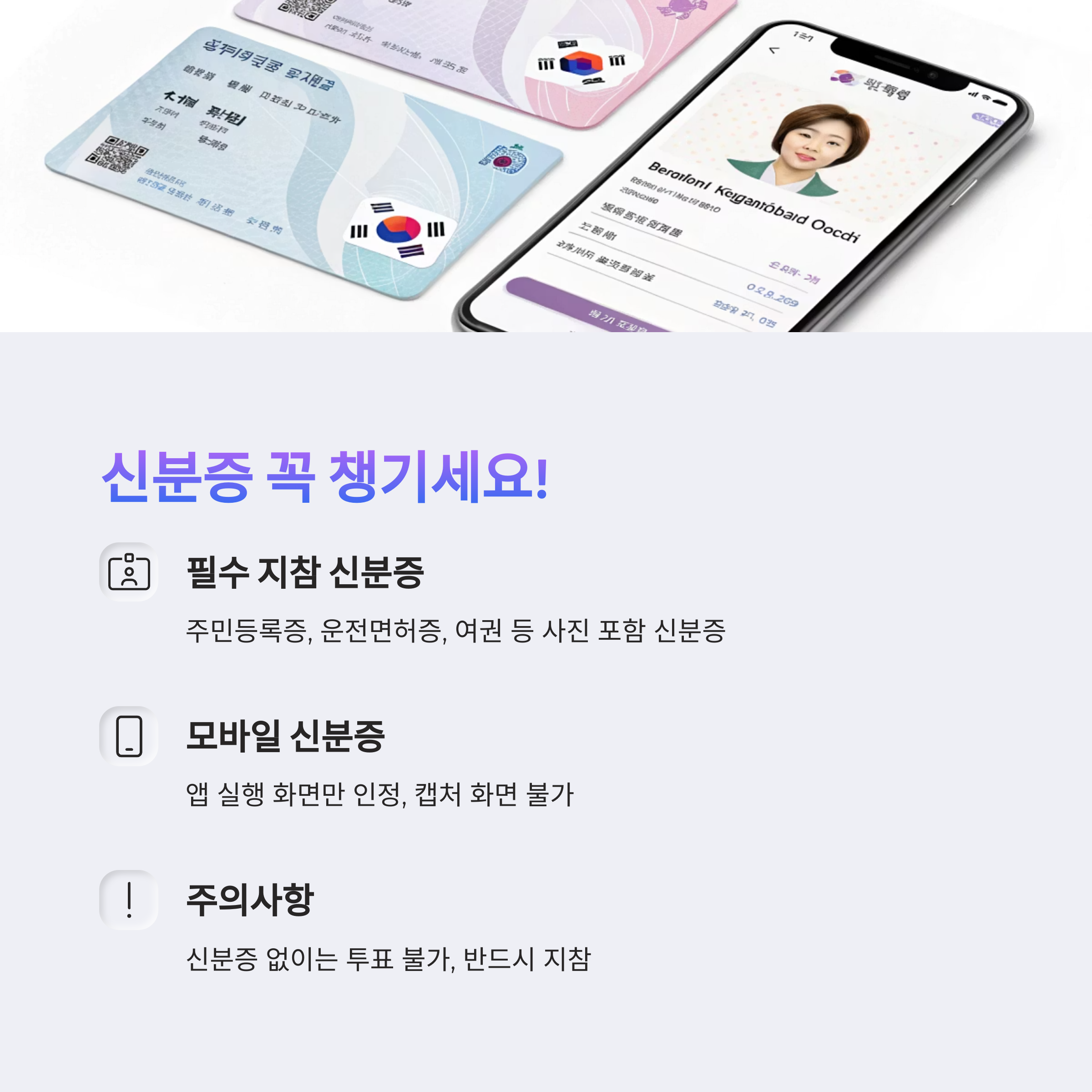 투표소에 방문할 때는 반드시 신분증을 지참해 주세요.