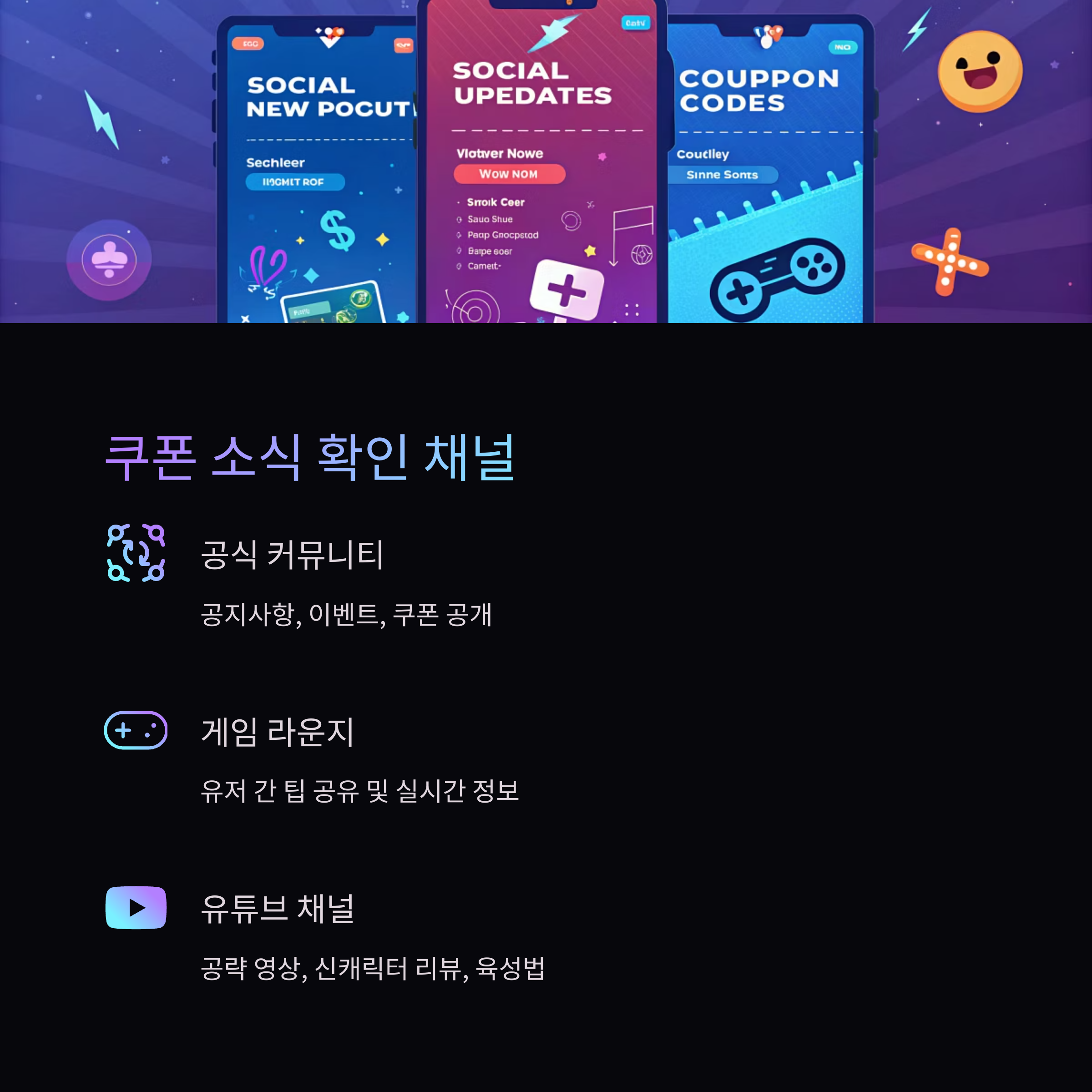 | 인벤, 루리웹 등 게임 커뮤니티 | 최신 쿠폰 정리 및 사용법 팁 제공 |