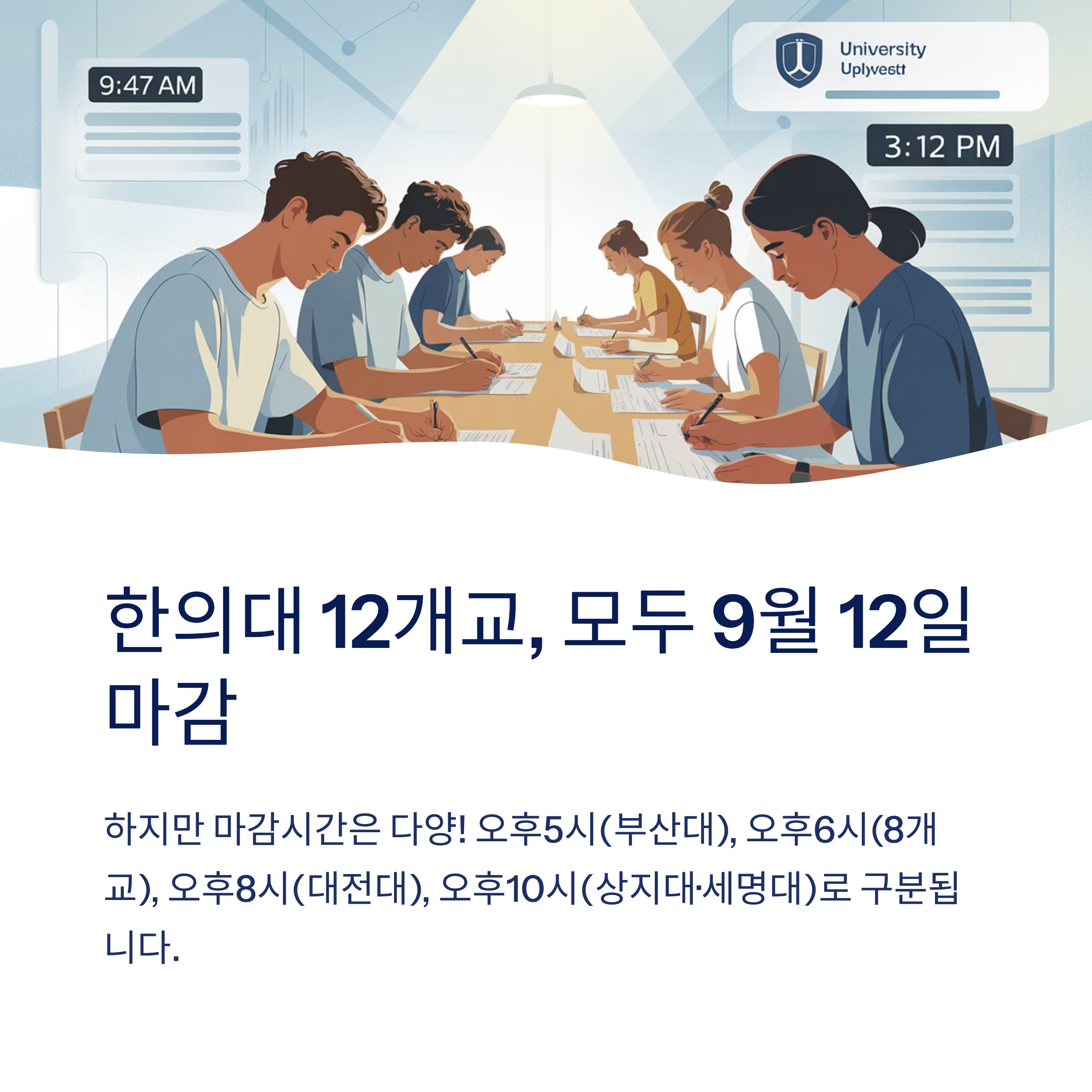 - 12개 대학 모두 9월 12일 마감